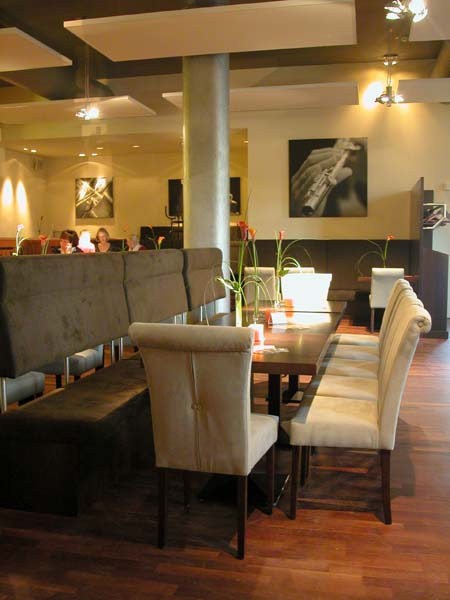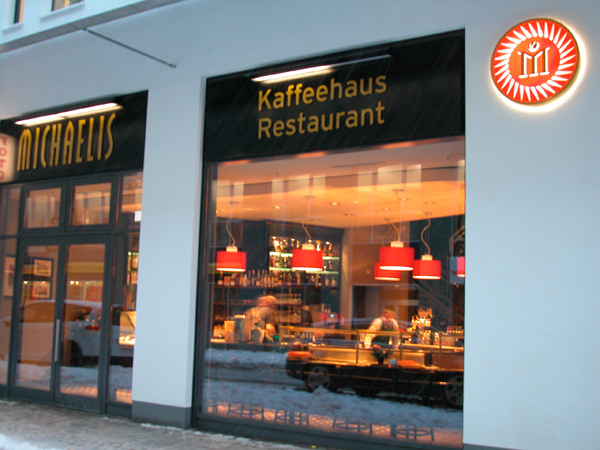 Konzeption eines modernen Kaffeehauses im Rahmen der Innenstadtgestaltung von Chemnitz. Kaffeehaus mit angeschlossenem erstreckt sich über zwei Ebenen. Entwicklung in Zusammenarbeit mit Chemnitzer Gastronomen.