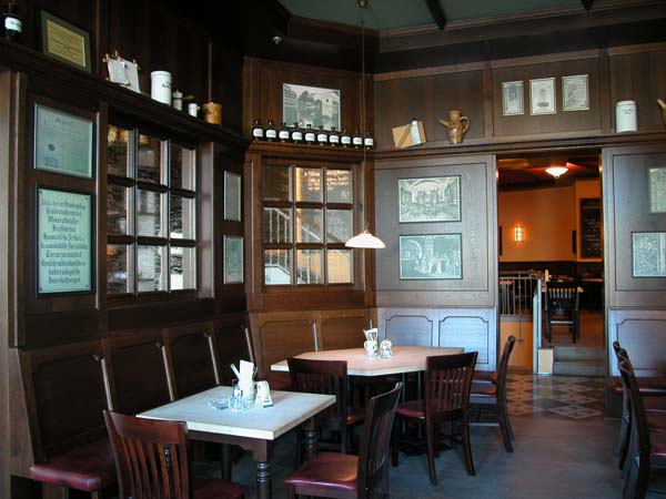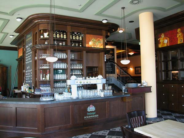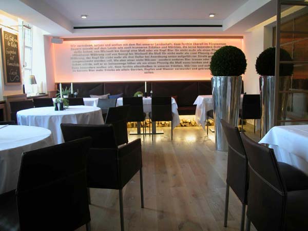Innenarchitektonische Basiskonzeption und Konzeptentwicklung. Genehmigungsabstimmung mit der Denkmalpflege. Vor-, Entwurfs- und Ausführungsplanung, Ausschreibung, Vergabe und Objektüberwachung. Design- und Lichtkonzeption. Coporate Design. Entwurf von Sondermöbeln und -leuchten für Biergarten und Gastronomie.
