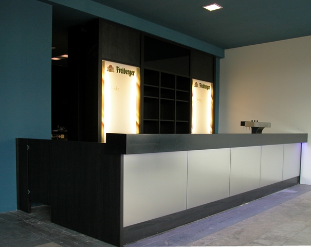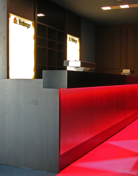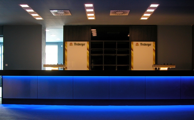 Konzeptplanung für die alle Theken des Veranstaltungsareals. Lichtdesign der Thekenanlagen. Prüfung der technischen Machbarkeit und Beratung des Bauherren bei der Ausführung.