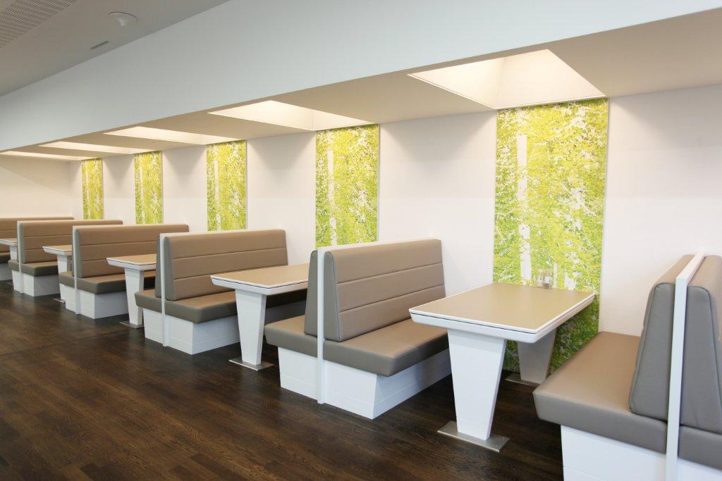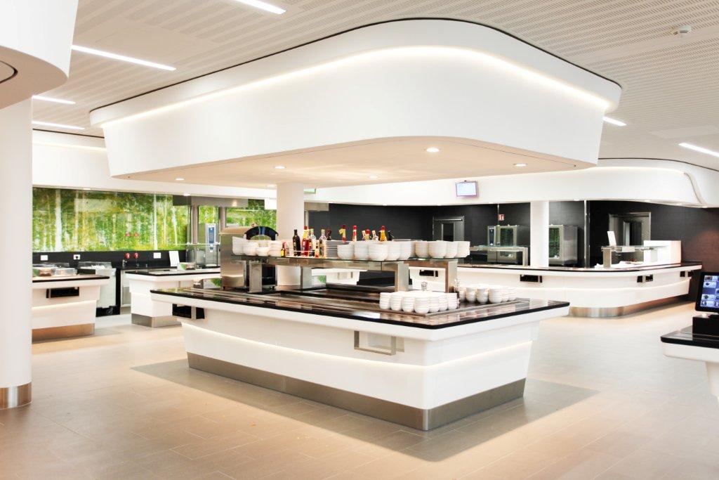Planung und Design einer neuen Mitarbeiterverpflegung in Frankfurt am Main. Erstellt werden sollte eine zeitgemä�e Umgebung für bis zu 2.500 Mitarbeiter. Gestaltet wurden die kompletten Innenräume, einschlie�lich Essenausgabe und die anspruchsvollen Möblierung im eigenen Entwurf.